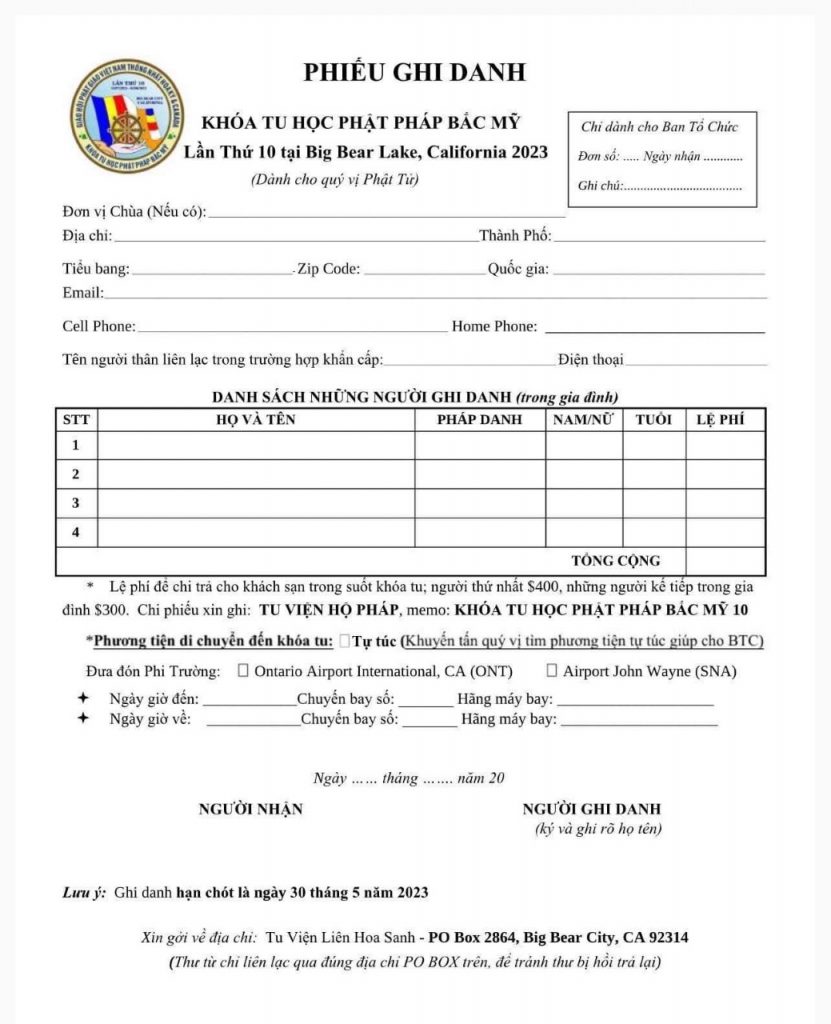 Phiếu Ghi Danh khóa tu 7.31.2023-8.3.2023